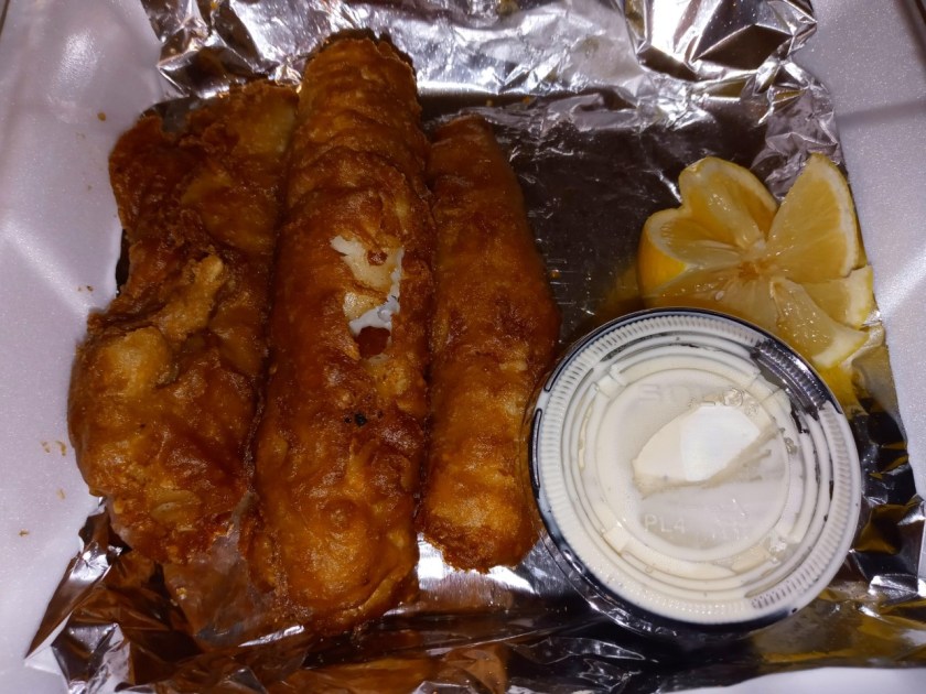 Here’s a close-up of that gorgeous fried fish. It’ll make you moan “Oh my cod!”