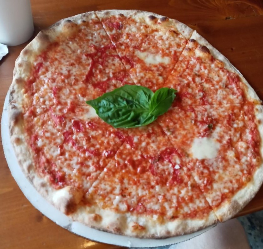 Stalwart Saboscrivnerinos, this was SUPOIB. A perfect pizza in every way. If you don’t like thin crust, you may be disinclined to agree, but I sure do. It wasn’t as crisp as a New York-style slice, but not as soft and floppy as a Neapolitan-style pizza. I’d describe it as a perfect middle ground between those two beloved pizza styles. As you can see, it was cut into six large slices rather than eight smaller ones (which I prefer, for no real reason), and I wolfed it down in no time flat. (It was my first meal of the day, you see, after spending hours cleaning the garage in the sweltering heat.)