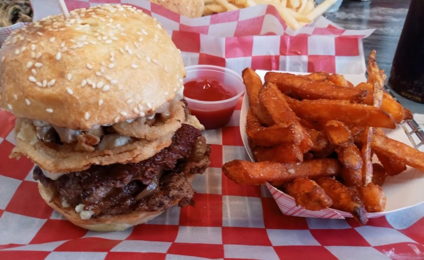 I was having a hard time choosing from all of Chef John’s creations, but when I saw they had a daily special that wasn’t on the regular menu, it became an easy decision. This was the Drew, a burger topped with French stewed onions, crispy onions, Bleu cheese, and some kind of tangy aioli. I had actually been fantasizing about French onion soup that very day, so it was a perfect burger and a perfect decision.