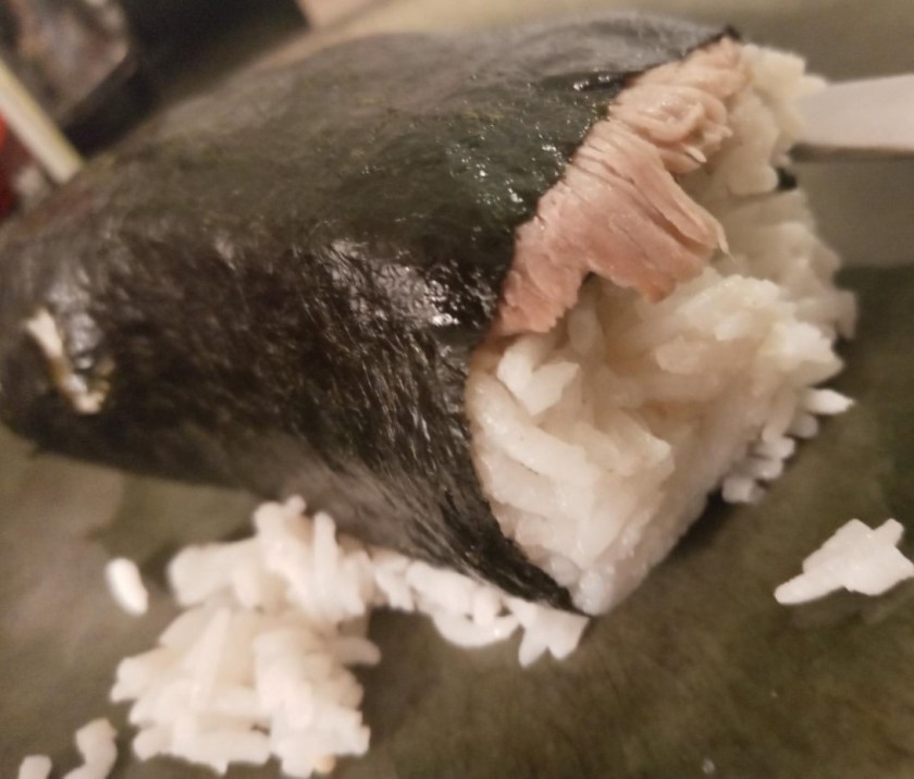 I didn’t think my wife would care for the adobo, which is why I enjoyed that at the restaurant. But when I brought home the rest of the food, I asked her to try the kalua pig musubi and the pork belly sisig, and she pleasantly surprised us both by liking both. I don’t know why I was surprised, because both were really delicious, and even the sisig wasn’t spicy. I was thrilled she was now a fellow OverRice fan!