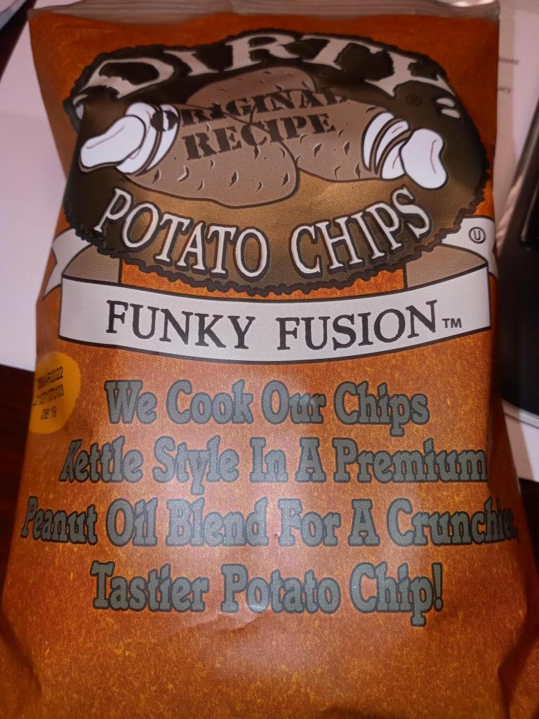 I only ever see the Dirty brand of potato chips in small bags near the Publix deli (not in the chip aisle).  These are thicker kettle chips.  My wife likes the plain ones from time to time (she doesn’t share my fascination with flavored chips), but one day I tried the Funky Fusion, and it is essentially the Dirty version of Zapp’s Voodoo flavor.  Not nearly as good, though.