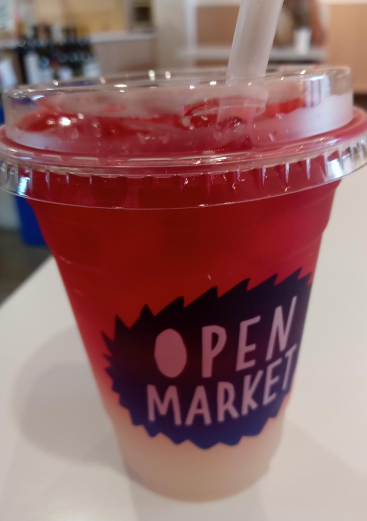 It was a hot August day on my first visit there, and even though Open Market’s coffee and tea drinks always sound good, I’m not much of a coffee or tea drinker. I am a big lemonade aficionado, though. I started out with this seasonal hibiscus lemonade, as beautiful as it was refreshing.