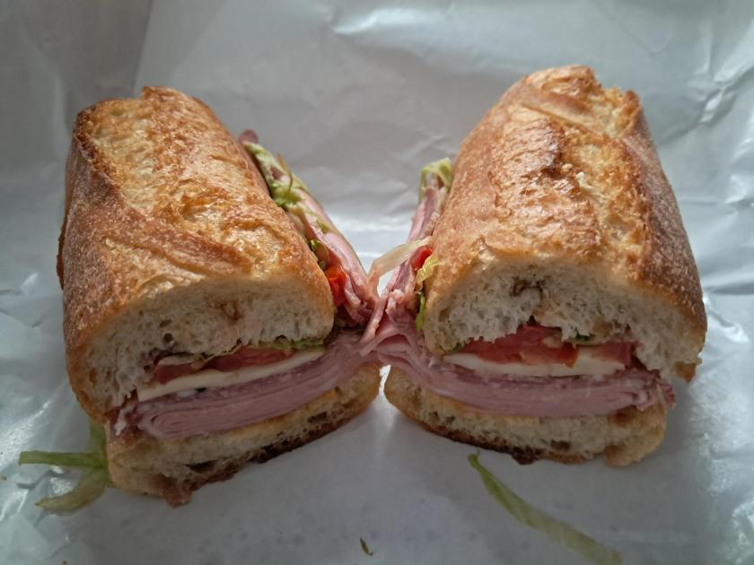 Finally, I tried the Wilshire, because of my lifelong love and obsession with Italian subs. This baguette sandwich includes soppressata salami, mortadella, provolone cheese, lettuce, tomato, Calabrian chili, and balsamic vinegar. I ate it the following day, so all those intense flavors had time to meld in my hotel room mini-fridge.