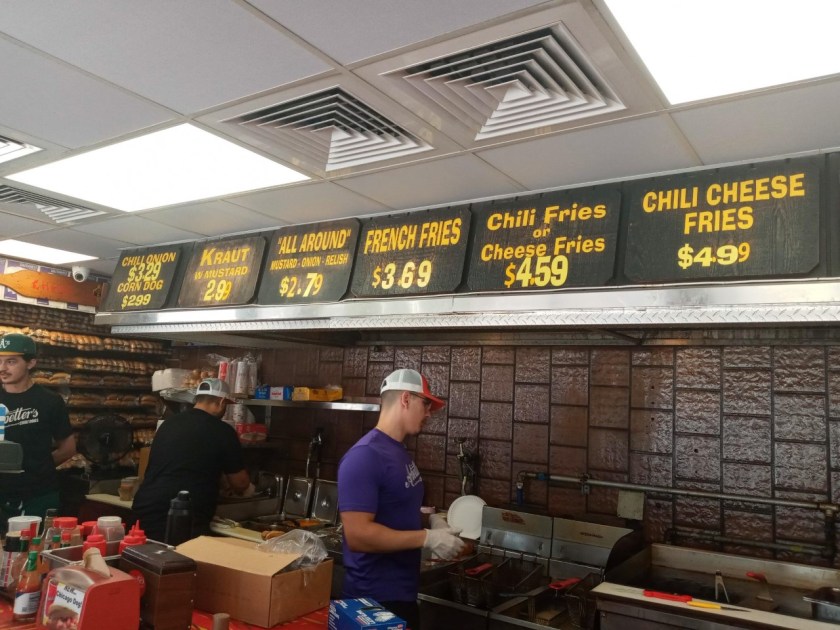 These were great onion rings — breaded rather than battered, not too thick or too thin, not too greasy, not ripping out of the breading. I definitely rank them as “the good kind” of onion rings. I dipped them in a ridiculous mound of ketchup, but in retrospect, I failed my readers and also myself by not getting them topped with chili and cheese (which would have also been $4.99, just like the fries).