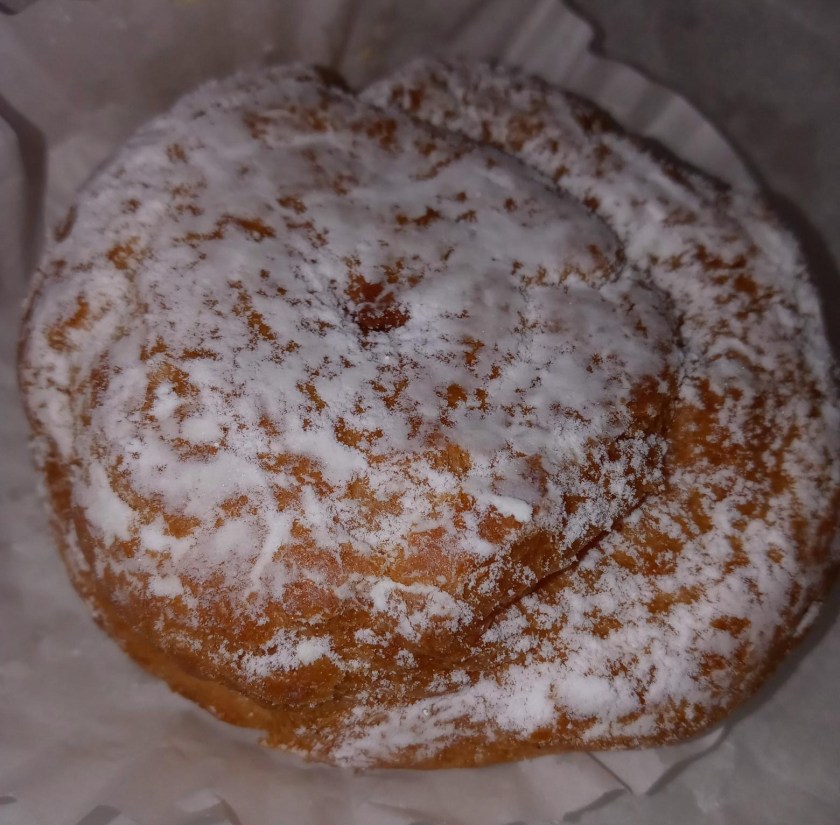 This was a gorgeous sfogliatelle, a delicate shell-shaped pastry made of dozens of crispy layers of dough, with cream in the middle (usually a bit lemony), dusted with powdered sugar so it looks more like it came from Miami than St. Petersburg.  Luckily, one can get  sfogliatelle in Orlando now, at Stasio’s or D’Amico & Sons, but on a rare pilgrimage to Mazzaro’s, you have to try everything you can.  One of my favorite food-related activities is “Dare… To Compare!”, and this pastry shell will make you yell “Shell yeah!”