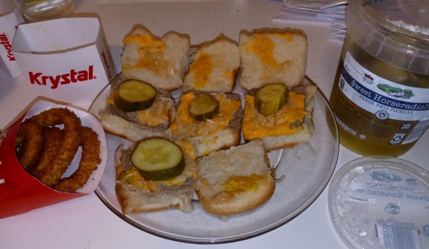 Sandwiches and baskets come with two sides, so I chose the collard greens (stewed with slices of sausage; allegedly andouille) and sweet corn fritters that I forgot to photograph, but you’ll see them a little later. Anyway, I can’t recommend this sandwich highly enough. It was everything a fish sandwich should be, and the blackened seasoning imparted terrific flavor without overpowering the taste of the fish, and didn’t make it too spicy either. Apparently a lot of restaurants sneakily sell other, lesser fish that they label as grouper and price accordingly, but this is the real deal, and you don’t see it on many menus around Orlando.