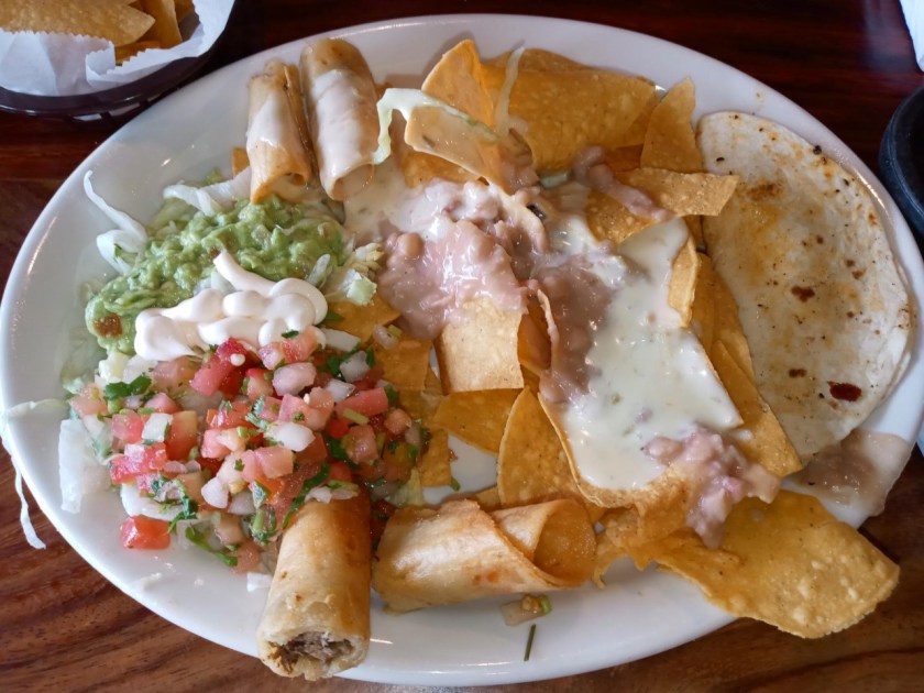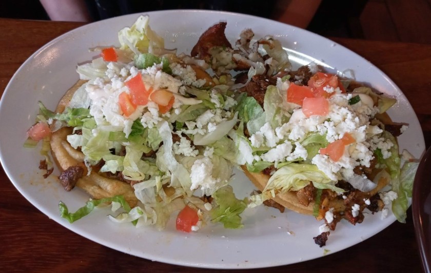 On my first recent visit, I was alone, and I was hungry. Figuring I would have leftovers, I started out with the smoked fish dip as an appetizer ($8). It arrived with a beautiful presentation: a substantial scoop of the smoky stuff surrounded by a refreshing rainbow of various vegetables: crunchy carrot and celery sticks, cool cucumber slices, piquant pickled jalapeños, and my absolute favorites, crunchy pickled onions in a shade I can only describe as “Barbie Dream House pink.” These things are so tangy and sweet and delicious, I make them at home in massive quantities and put them on everything. The smoked fish dip was good, but the pickled onions, adding that vinegary tang and crunch to the smoky, creamy, melt-in-your-mouth coolness, elevated it to a next-level app.