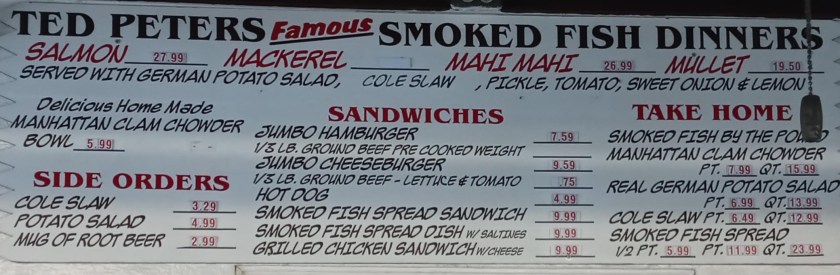 Ted Peters Famous Smoked Fish (https://tedpetersfish.com/) is a legendary landmark in St. Petersburg, Florida, right off the beach. It is a perfect example of a classic “Old Florida” seafood restaurant and smokehouse, the kinds of places that barely exist anymore, but those that remain are both time capsules and treasures. Founded in 1951 and still family-owned and in its original location, Ted Peters conjures up sights, smells, and tastes of a bygone era, but luckily we can still enjoy them today. In fact, just last month, Southern Living magazine (which features some pretty great food writing) included Ted Peters in its list of Florida’s 17 Most Legendary Restaurants. (I have been to five of them and reviewed one other on this blog, Bern’s Steak House.)